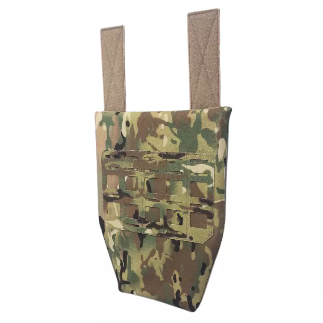 Фартух легко кріпиться під клапан плитоноски або бронежилета за допомогою велкро хлястиків, що дозволяють налаштувати висоту.