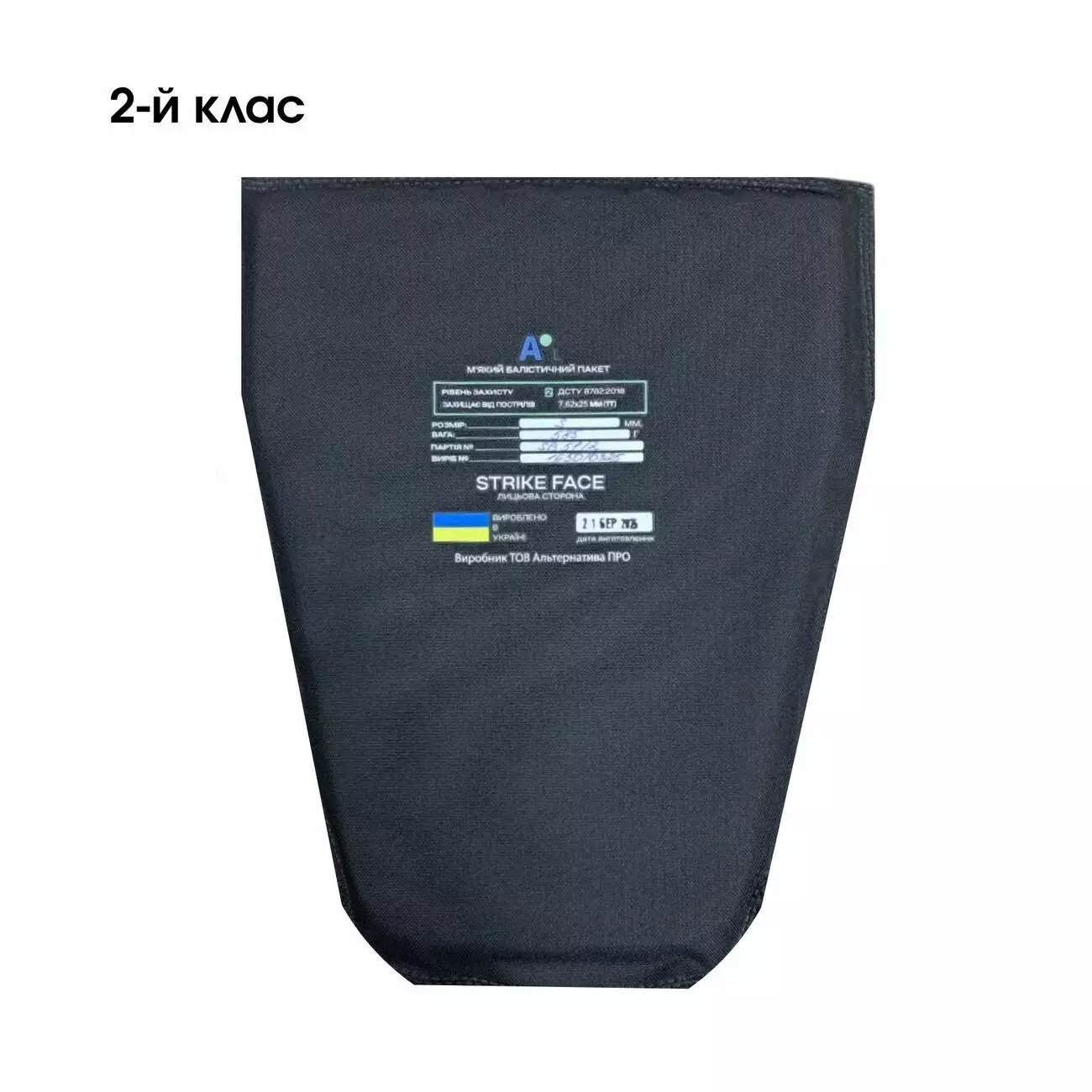 - Матеріал балістичного пакету: НВМПЕ + арамідне волокно (кевлар)