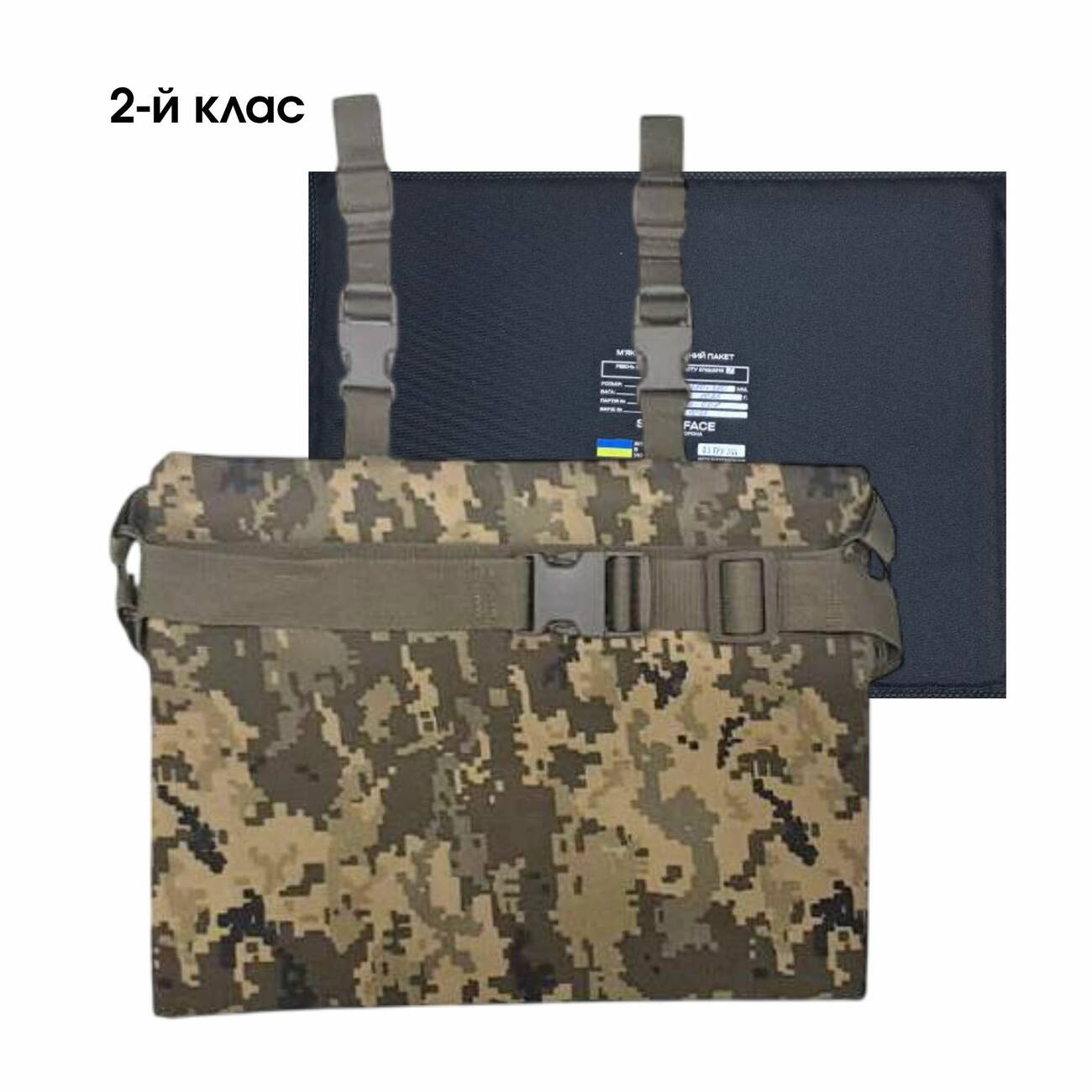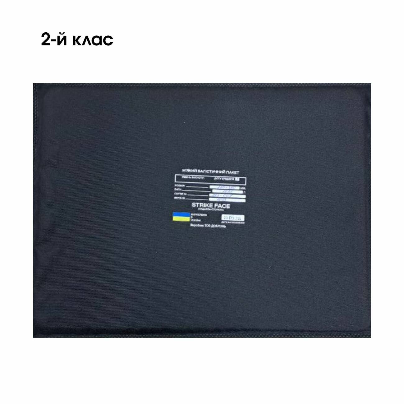 - Матеріал балістичного пакету: НВМПЕ + арамідне волокно (кевлар)