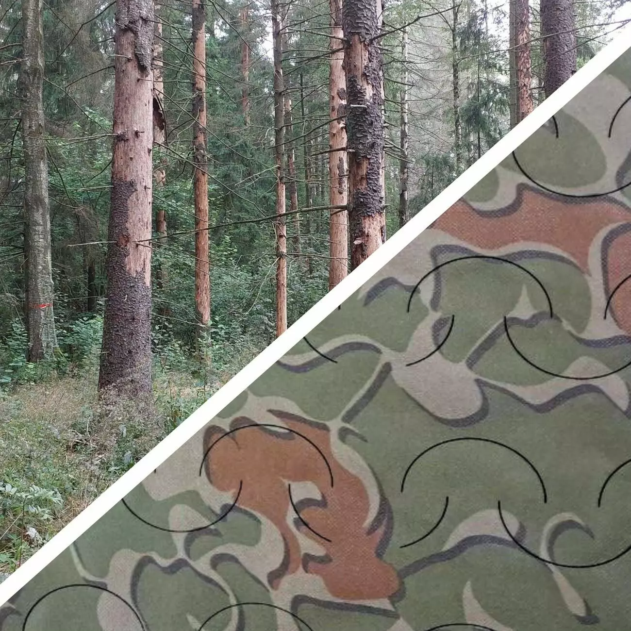- Тип маскування: Під зелень, листя, сосновий ліс; весна, літо, рання осінь