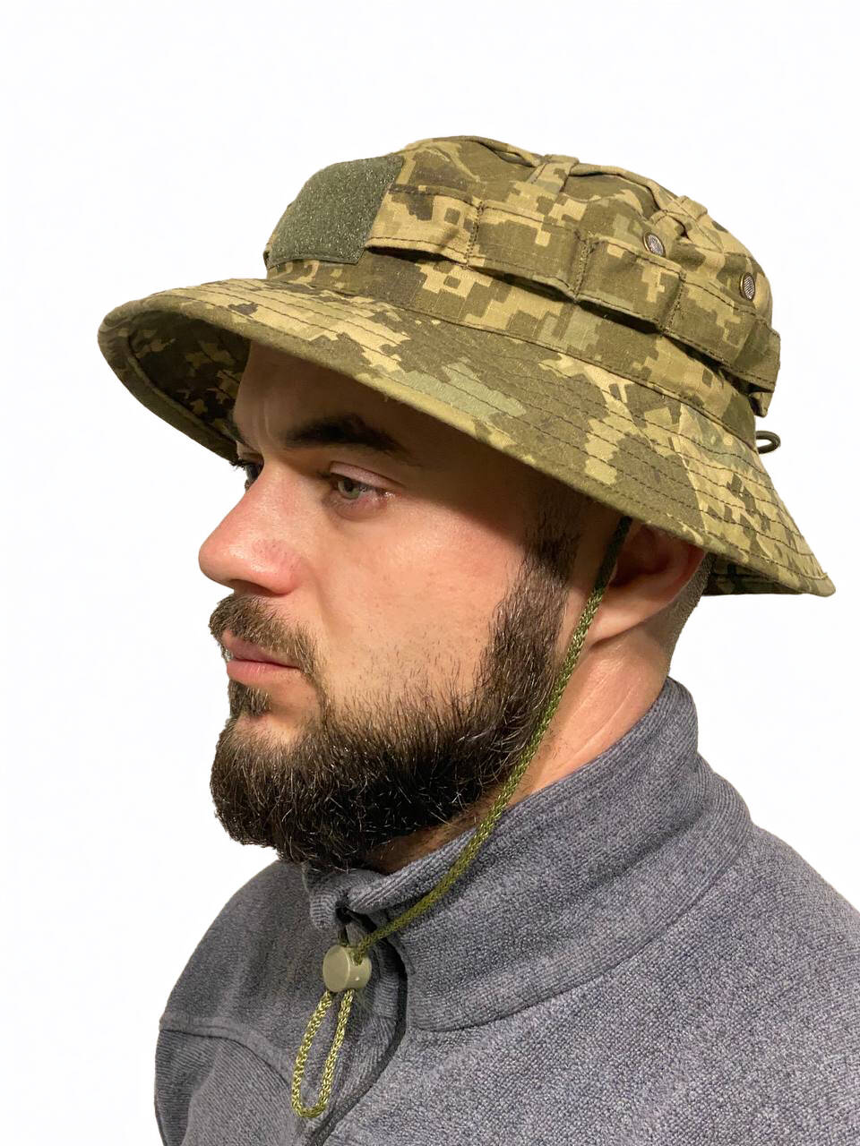 Тактична панама розроблена з урахуванням сучасних вимог до комфорту та функціональності у польових та бойових умовах. Виготовлена з тканини Rip-Stop (65% котон, 35% поліестер) із вологостійким просоченням, вона вирізняється високою зносостійкістю та захистом від розривів.