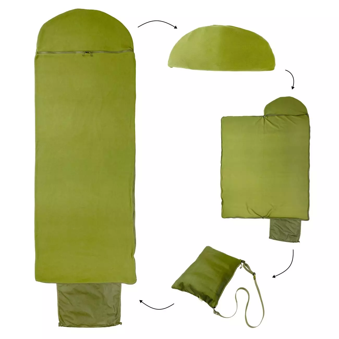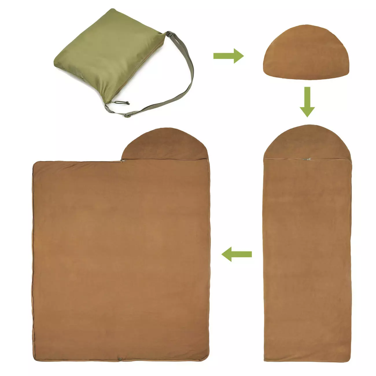 - Вкладиш у спальний мішок. В застебнутому стані має форму прямокутника з капюшоном розміром 215х80 см.